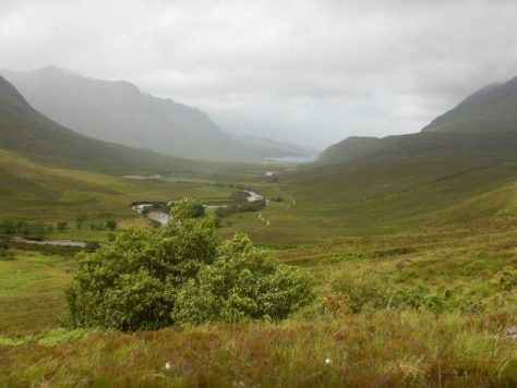 The eroded path leads you through a narrow little glen that drops steeply down to Shenavall. Now I could see the two rivers converging before entering Loch na Sealga, and the route ahead was laid out for me. It seemed less daunting now, faced with the reality, but I was still pleased I didn’t have to get my feet wet – or, at least, any wetter – on this circuit.